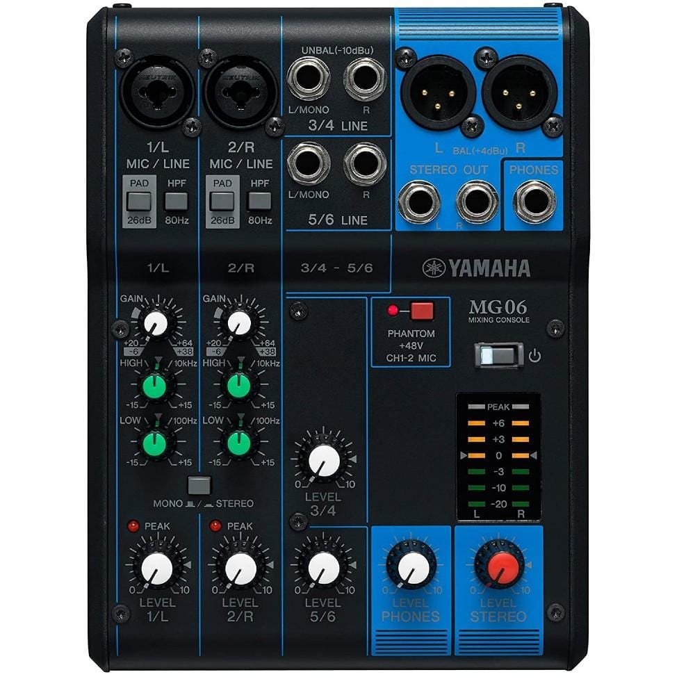 - The Yamaha MG06 is a compact 6-channel analog mixer designed for small venues, recording setups or home studios.