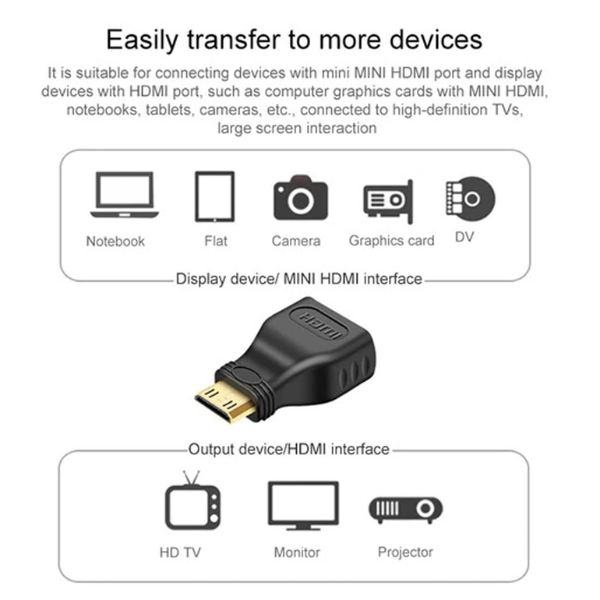 - HDMI (Female) to Mini HDMI (Male), 19-pin