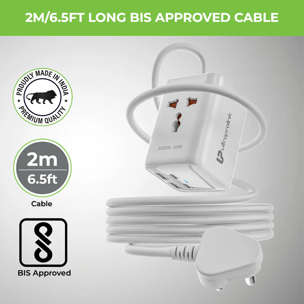 - It delivers 2500W power with 350J/10,000A protection, a 2m BIS-certified cable, and a fire-safe design—ideal for charging multiple devices safely and efficiently..
