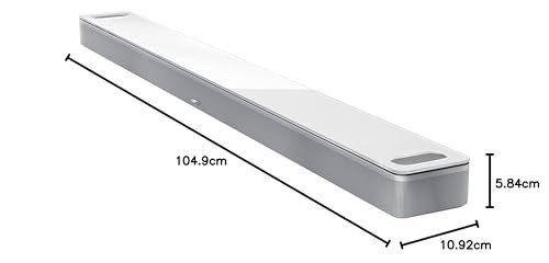 Measuring just over 41 inches in width, the Bose Smart Ultra Soundbar features a premium glass top and a wrap-around metal grille that looks as good as it sounds. Inside, it houses six transducers, including two custom-engineered upward-firing dipole speakers that bounce sound off the ceiling to create overhead effects. The sleek profile allows it to fit perfectly under most TVs without blocking the screen.