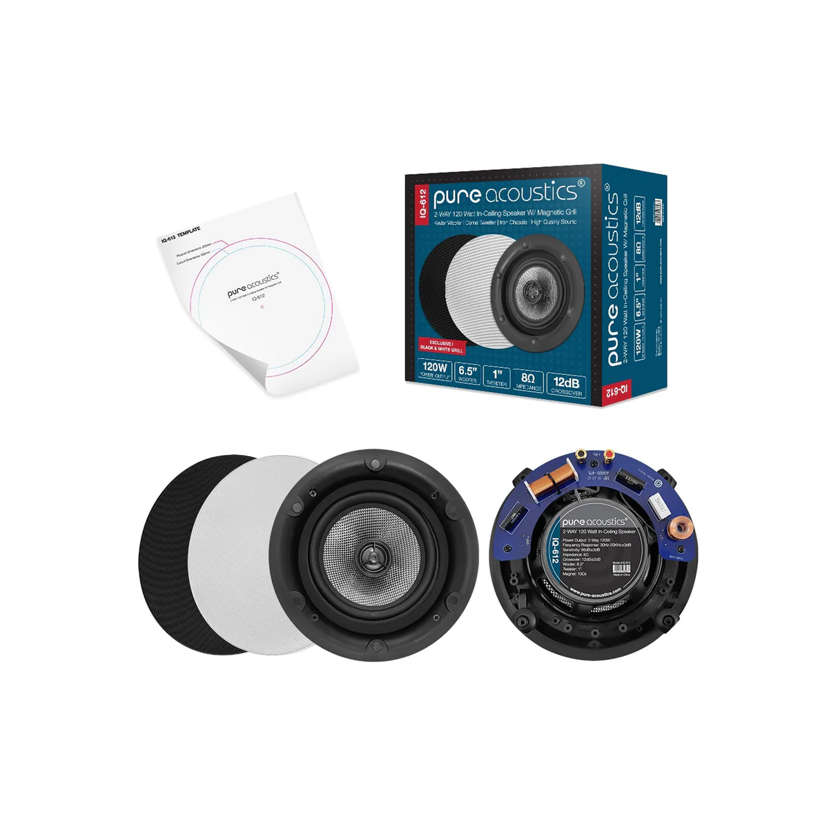 The Pure Acoustics IQ-612 is a high-performance 2-way 6-inch in-ceiling speaker pair designed to deliver clear, dynamic sound with an elegant, low-profile appearance. Perfect for home theaters, offices, and multi-room audio systems, it offers crisp highs and deep, balanced bass for an immersive listening experience. Its easy-mount design ensures seamless installation and blends effortlessly with any interior décor.
