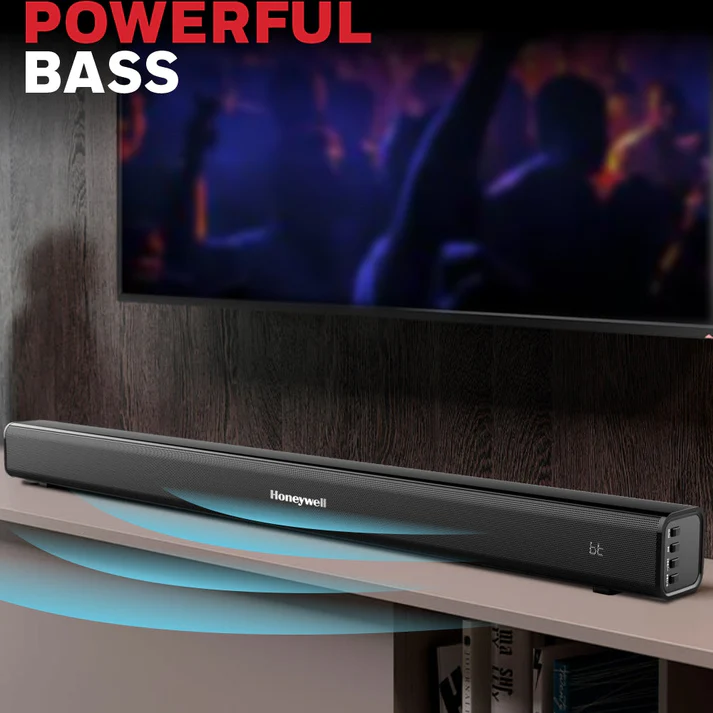 The Honeywell Suono P1000 is a compact soundbar built to upgrade your TV’s audio with minimal setup and maximum impact. It delivers stereo sound with built-in amplifier power, and connects effortlessly via HDMI ARC, optical, USB, AUX or Bluetooth. With dual 52 mm drivers and 2.0-channel configuration, it brings fuller, clearer sound compared to most built-in TV speakers. Wireless streaming via Bluetooth 5.0 adds flexibility for music, podcasts or games. The P1000 is ideal for smaller living rooms or secondary TV setups—smart, simple, and budget-friendly without compromising on connectivity.