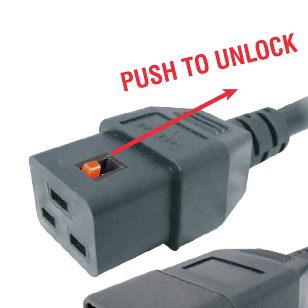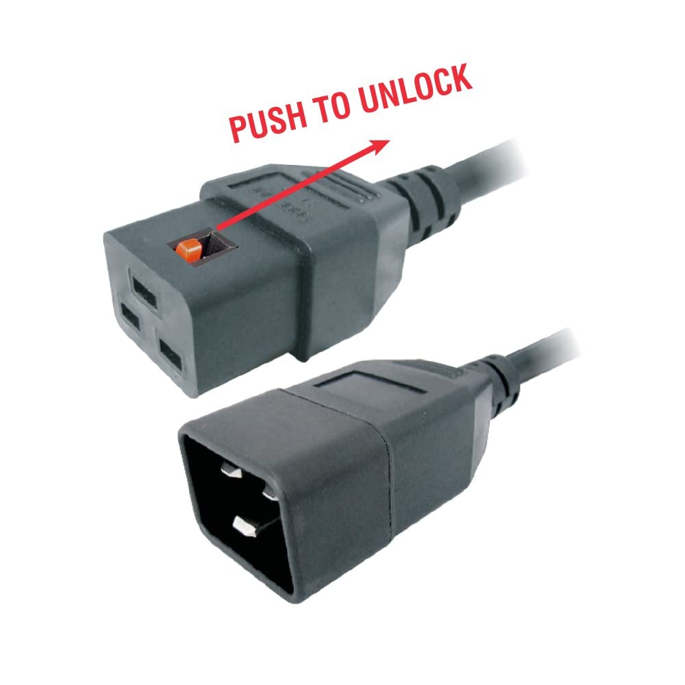 MX AC MALE (IEC – C20) + AC FEMALE (IEC – C19) SERVER LINK CORD (16 AMPS) – 3 X 1.5 SQ. MM – OD 8.5 MM – 1.5 MTR. The INNOVATIVE design allows a quick secure connection for the C19 end to any C20Inlet or Plug. Prevent inadvertent disconnects with the MX C19 IEC AUTO LOCK. The elegance of the solution is that NO proprietary mating inlet or plug is required.